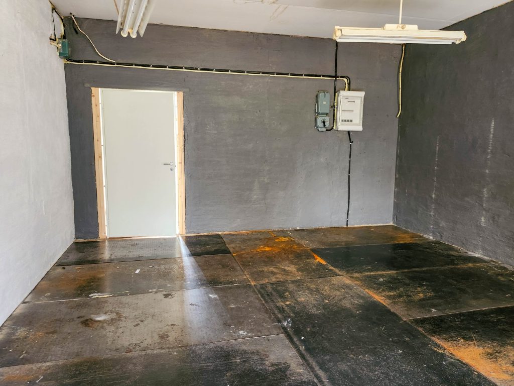 The empty workshop space (view from the back of the shop).Rear of workshop with door to bathroom.