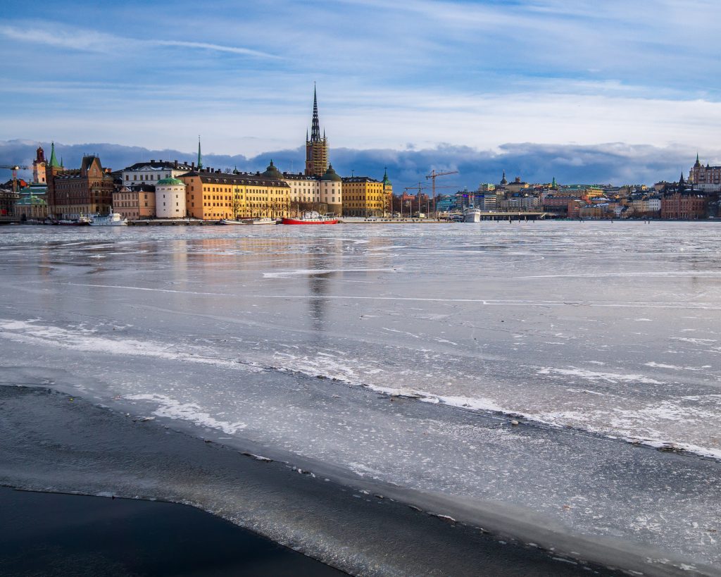 Riddarholmen viewed from the frozen RiddarfjärdenIzzy in the cold Stockholm winter.Stockholm Stadshuset Gamal Stan (Old Town Stockholm)