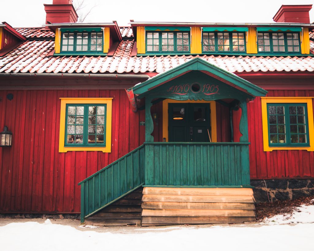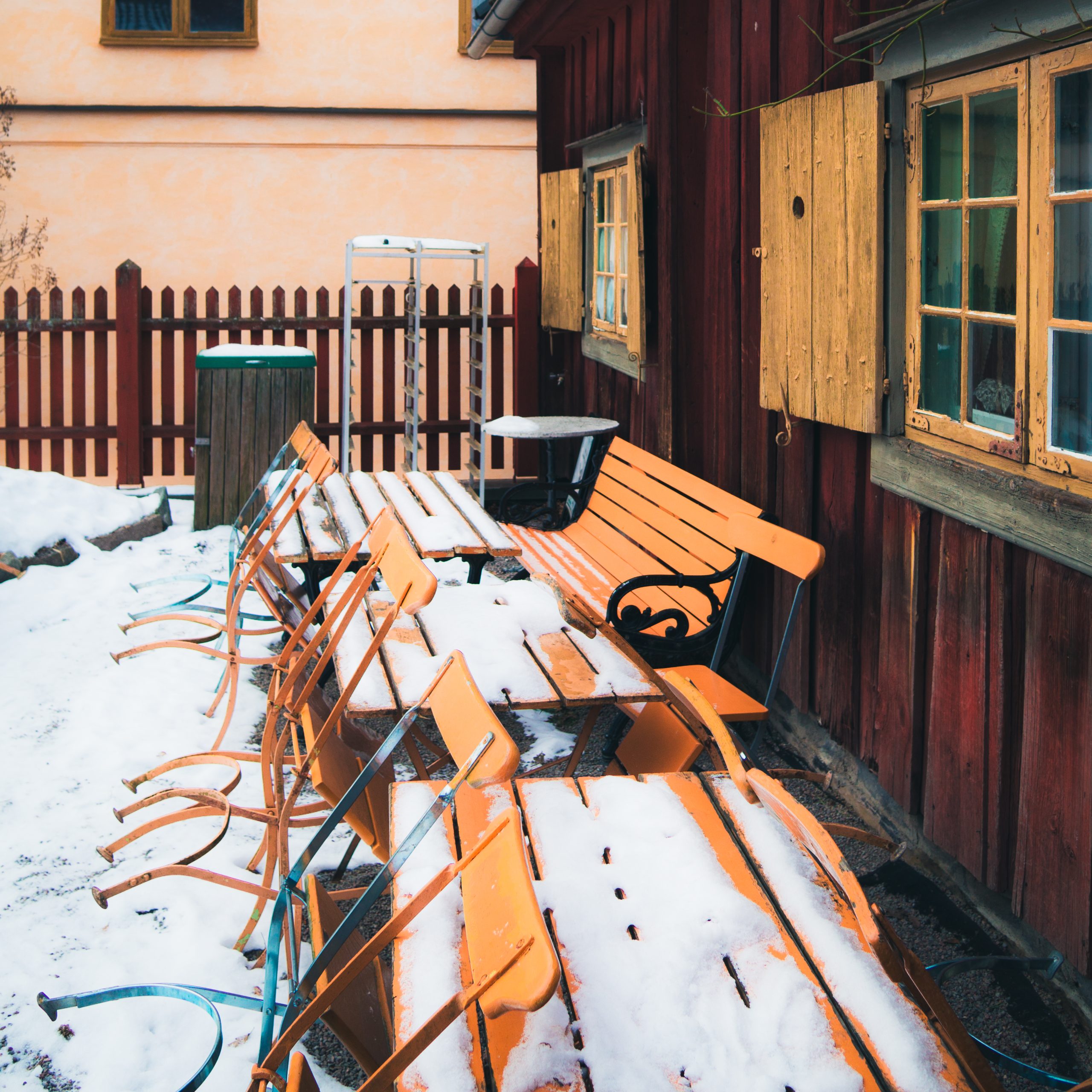 A frozen Skansen.Snow covered picnic benches.Colors of SkansenInside the bakery, SkansenSkansen