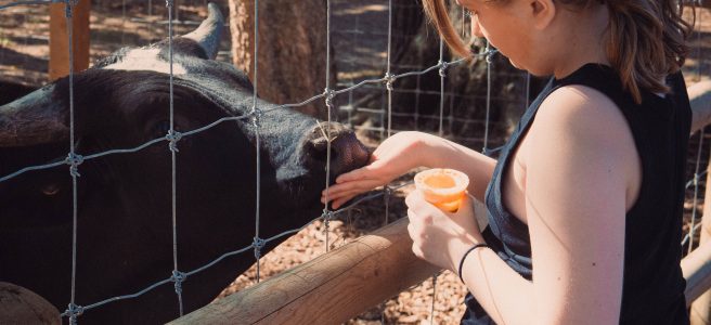 Izzy feeding the animals at Grant’s Farm, St. Louis