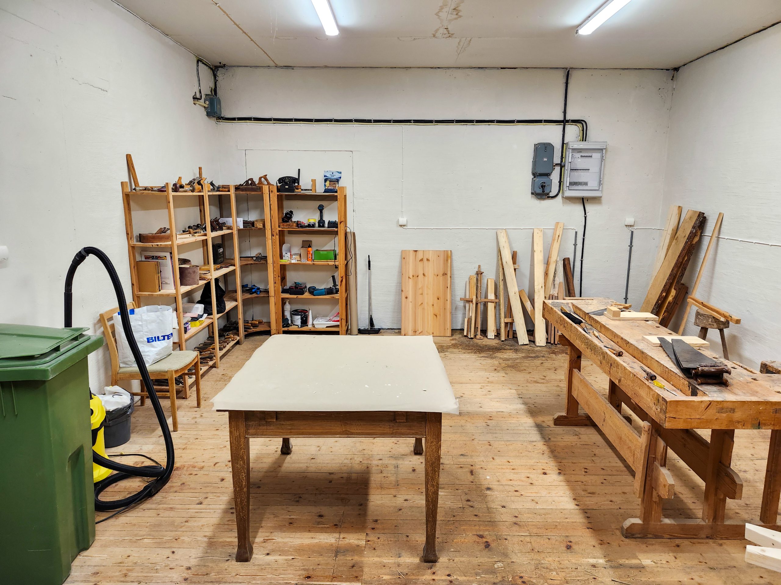 The workshop is making slow progress. A few days ago, the landlord, Bo, and I installed a board over the hole from the door at the rear of my workshop. Yesterday Izzy and I stopped by to put the second coat of paint on the board. Today I spent a few hours cleaning up the room a bit and putting the shelves in place. The walls are still bare and I need to bring my tools over. I can use the industrial tablesaw next door and I think Dan has a router I can borrow for now, so I think it is time to start building a pair of hall benches. I know my ADHD will make it tough to work on a project and not just building out a workshop. I think I mostly spent time in my workshop in Preston making stuff for the workshop. I’ll have to work hard to make sure I’m more productive here.