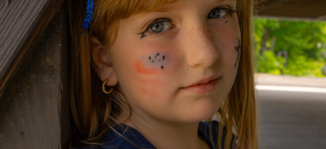 Susanna and Izzy dressed up for the Memorial Day parade in Ledyard today!Izzy standing in the shade waiting for the parade to start. I used the new Lightroom adaptive AI to clean up the distracting cars that were in the background.